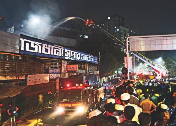 DHAKA, Nov 21 (NNN-BSS) – A fire burnt down over a dozen shops, in the New Rajdhahi Supermarket, in the capital’s Tikatuli, yesterday. The fire began at a mattress store on the first floor of the two-storey market, around 5:15 pm, officials said. Twenty-five fire engines were deployed to douse…