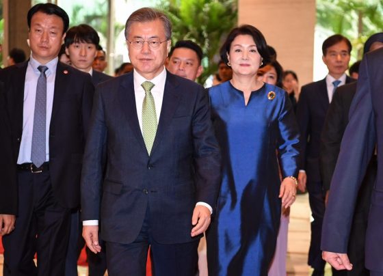 Bandar Seri Begawan, Brunei, March 11 – South Korean President Moon Jae-in and his wife, Kim Jung-sook, disembark Korean Air Force One after arriving in Brunei on March 10, 2019 for a three-day state visit. Moon Jae-in was set to hold a summit with Sultan Hassanal Bolkiah on Monday to…