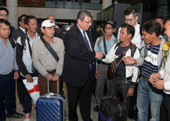 Foreign Minister Datuk Saifuddin Abdullah (centre) welcomes the group of Sarawakians at the Kuala Lumpur International Airport in Sepang March 4, 2019. Photo courtesy bernama SEPANG, March 4 (NNN- Bernama) — The eight Malaysians who were stranded in Monrovia, Liberia since February 4 after they were cheated by an employment…