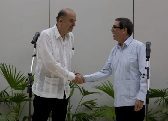 Alvaro Leyva (L) and Bruno Rodriguez HAVANA, Aug 12 (NNN-Xinhua) — The Colombian government wants to resume peace talks with…