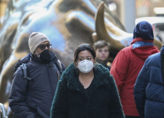 A woman wearing a face mask walks on a street in Manhattan of New York NEW YORK, Feb 5 (NNN-Xinhua)…