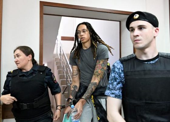 US WNBA basketball star Brittney Griner arrives to a hearing at the Khimki Court, outside Moscow MOSCOW, June 28 (NNN-AGENCIES)…