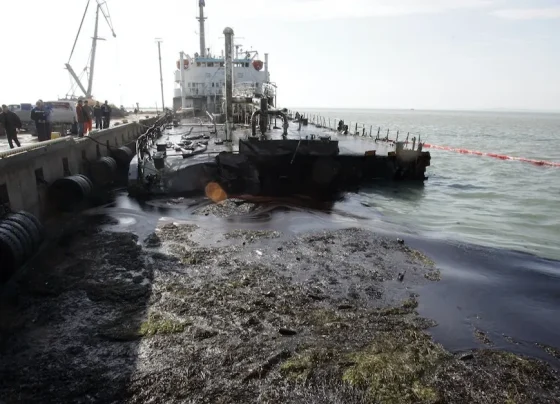 عاصفة جوية تتسبب في تسرب نفطي من ناقلتي نفط روسيتين في البحر الأسود