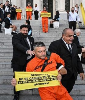 BUENOS AIRES, 27 feb (NNN-TELESUR) — Un grupo de activistas de Greenpeace fue arrestado por la Policía Federal Argentina (PFA) tras una protesta simbólica en las escalinatas del Palacio Legislativo en Buenos Aires. La manifestación se produjo pocas horas antes
