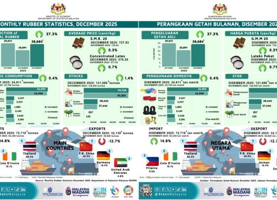 KUALA LUMPUR, 12 feb (NNN-BERNAMA) — La producción de caucho natural en Malasia alcanzó las 28.684 toneladas en diciembre de…