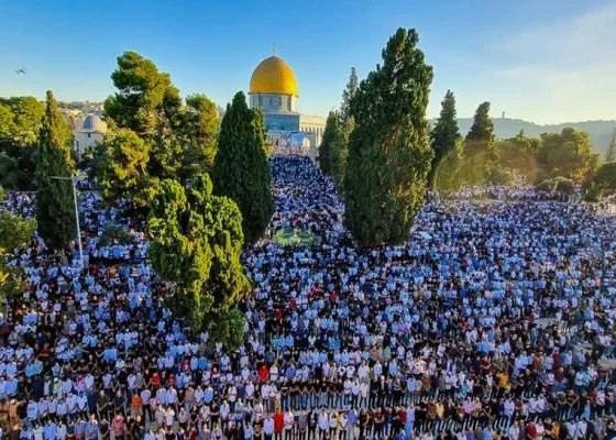 Decenas de miles realizan la primera oración del viernes en la Mezquita de Al-Aqsa tras su reapertura