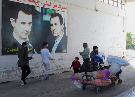 La gente lleva sus pertenencias mientras durante su viaje de Líbano a Siria, en el cruce de Jousieh entre Siria…