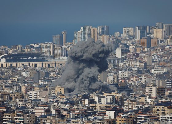 El humo se eleva sobre los suburbios del sur de Beirut, después de un ataque israelí, en medio de las…