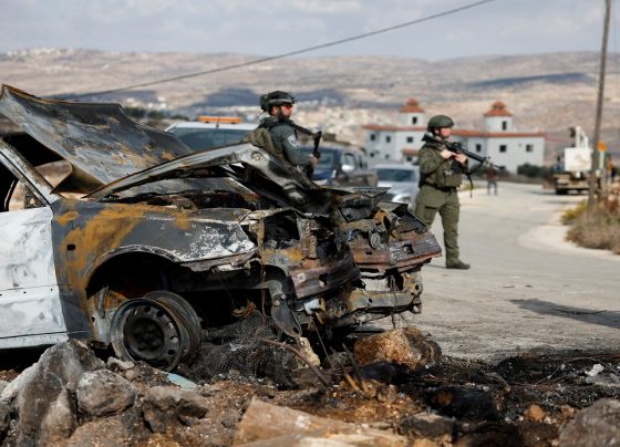 Un automóvil dañado después de un ataque de colonos israelíes en Beit Furik, en la Cisjordania ocupada por Israel, el…