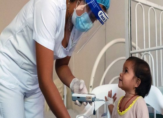 Una enfermera atiende a un joven paciente en la ESE Hospital de Nazaret en Alta Guajira, Colombia. Foto: OMS/OPS/Karen González…