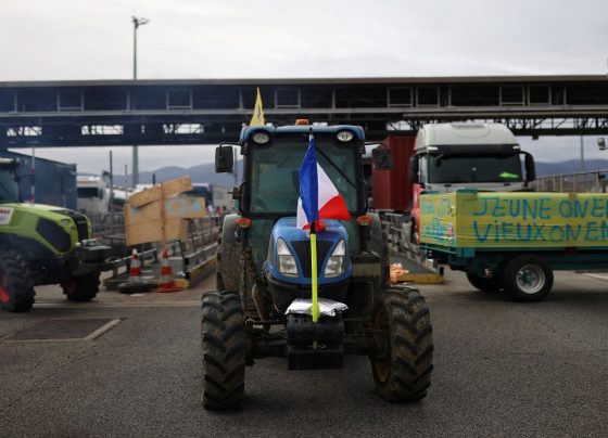 Los agricultores franceses bloquean el peaje de Boulou con sus tractores para protestar contra la perspectiva de un acuerdo comercial…