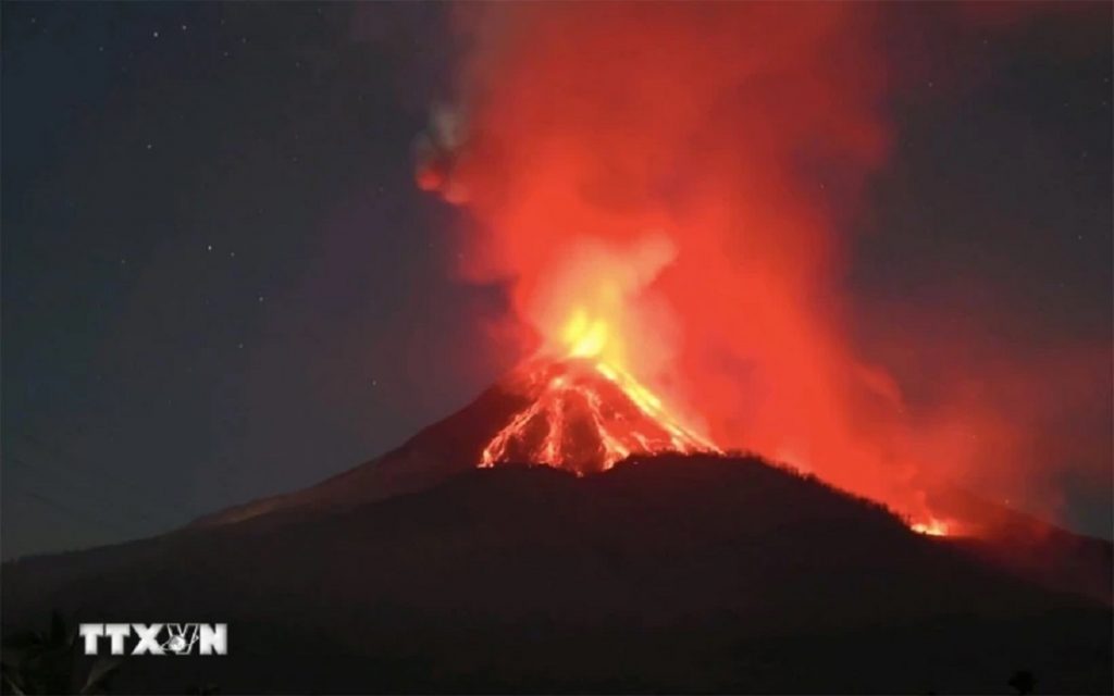 YAKARTA, 12 nov (NNN-VNA) — El Centro de Vulcanología y Mitigación de Riesgos Geológicos (VGDMC) de Indonesia informó el 11 de noviembre que el volcán Lewotobi en la provincia de Nusa Tenggara Oriental entró en erupción nuevamente, arrojando una columna de ceniza de hasta 2,5 km hacia el oeste y el noroeste.