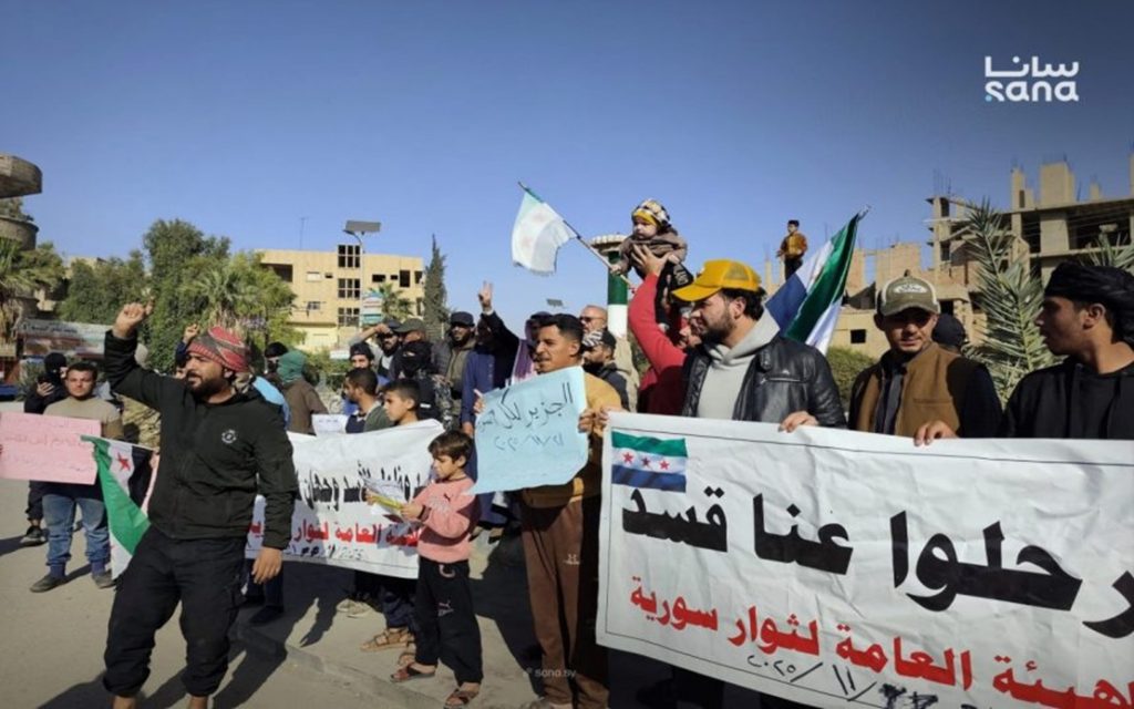 DAMASCO, 22 nov (NNN-SANA) — Decenas de residentes de Deir Ezzor se manifestaron el viernes en la rotonda de Madlaji para rechazar las acciones de las Fuerzas Democráticas Sirias (FDS) y reafirmar su compromiso con la unidad territorial de Siria.