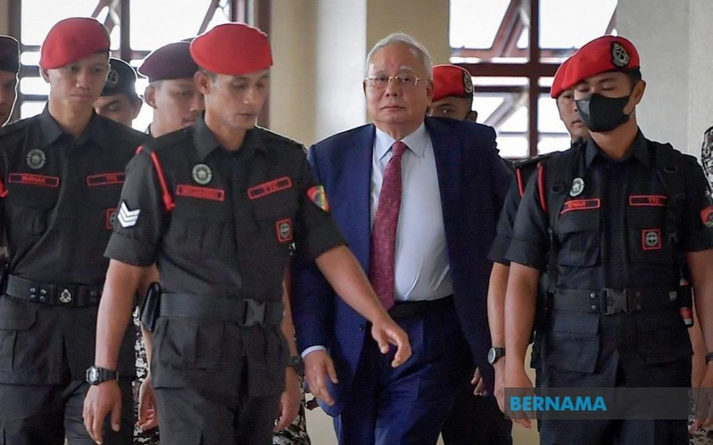 Najib enfrenta cuatro cargos por usar su cargo para obtener RM2.3 mil millones en sobornos de fondos de 1MDB a través de la sucursal de AmIslamic Bank Berhad en Jalan Raja Chulan, Bukit Ceylon, entre el 24 de febrero de 2011 y el 19 de diciembre de 2014.