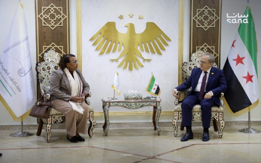 DAMASCO, 2 abr (NNN-SANA) — El ministro sirio de Educación Superior e Investigación Científica, Marwan Al-Halabi, se reunió este miércoles con la representante del Fondo de Población de las Naciones Unidas (UNFPA), Enshrah Ahmed, para analizar el estado de la cooperación bilateral en el campo de la salud reproductiva y la formación de parteras certificadas en el país.